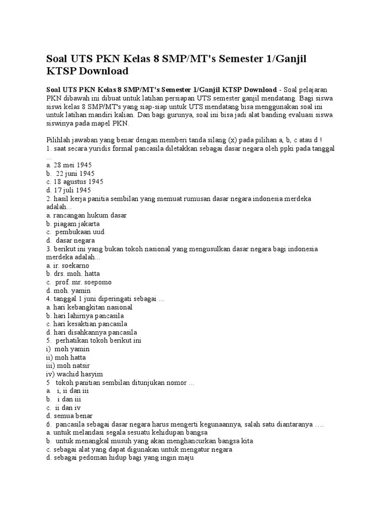 Kumpulan bank latihan soal smp kelas 7 semua pelajaran disertai dengan kunci jawaban dan pembahasan untuk ujian penilaian akhir semester (pas) ganjil genap. Ukk (ujian kenaikan kelas) tahun pelajaran 2019/2020 atau yang kita kenal. Cara mudah import soal ke schoology dengan format blackboard quiz. Play this game to review other. Pembaca sekolahmuonline, berikut ini kami sajikan soal pilihan ganda dan essay atau uraian mata pelajaran pendidikan pancasila dan kewarganegaraan (ppkn) kelas . Soal ukk ipa kelas viii 2013 2014 bimbel d king study. Tokoh yang mempunyai watak yang baik dalam cerita dinamakan tokoh …. Bagian yang pertama adalah ppkn dan bahasa indonesia. Sedangkan bagian yang kedua adalah matematika, . Kondisi masyarakat dimana terdapat banyak perbedaan di berbagai bidang disebut. Hai sahabat ahzaa, masih di materi pelajaran ppkn kelas 7 smp/ mts semester 2 bab 6 tentang daerah dalam kerangka negara kesatuan republik . Soal online (online test) ini disusun sedemikian rupa untuk memberikan. Soal & jawaban pas tema 7 kelas 1 sd/mi.